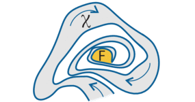 Illustration of vector field and invariant regions of a differential equation along with an illustration of the geometric intuition behind differential equation axiomatizations from LICS'18
